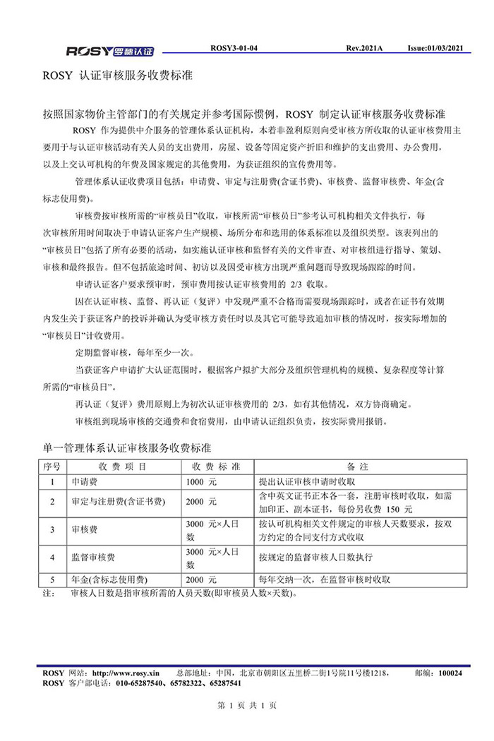 ISO22000食品安全管理体系收费标准
